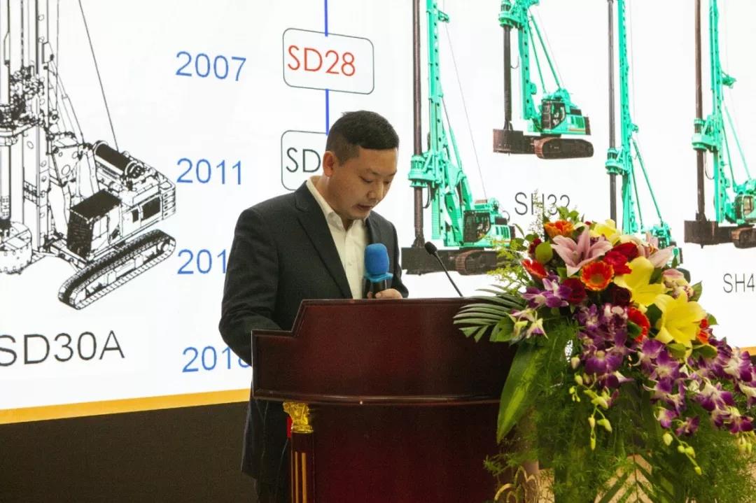 上海金泰副總經(jīng)理營銷公司總經(jīng)理徐峰先生在會(huì)議致辭中提到:“上海金泰作為國內(nèi)樁工行業(yè)歷史最悠久、產(chǎn)品門類最齊全、綜合能力最強(qiáng)的專業(yè)地下施工機(jī)械制造企業(yè),已有60多年的發(fā)展歷史。在這漫長的過程中,與在座的各位一起見證了我們國家改革開放取得的成果,同時(shí)創(chuàng)造了很多行業(yè)的第一,在80年代,我們成功研發(fā)制造了中國第一臺工程鉆機(jī),在90年代中期,在金泰誕生了中國第一臺中外合資生產(chǎn)的旋挖鉆機(jī)和第一臺液壓連續(xù)墻抓斗,同時(shí)也研發(fā)生產(chǎn)出了中國第一臺SMW工法鉆機(jī),進(jìn)入21世紀(jì),又先后研發(fā)生產(chǎn)了中國第一臺雙輪銑、雙輪攪拌鉆機(jī)。尤其在近年來,我們在技術(shù)研發(fā)、產(chǎn)品創(chuàng)新、市場拓展方面都取得了一系列的長足發(fā)展和成績,我們始終不會(huì)忘記,金泰每一步的發(fā)展,都離不開廣大客戶的信任與支持。”