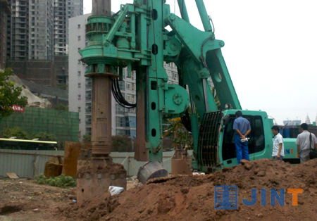 號稱四大火爐之一的四川,6月中旬已是酷熱難當(dāng)。炎炎酷暑下,成渝高鐵榮昌段施工前線依然在緊張施工中。其中最引人注目的是一臺藍(lán)綠色高聳入云的鉆機(jī),即金泰公司SD28型多功能鉆機(jī)。 雖然進(jìn)場不到三個月,這臺設(shè)備已工作了700多個小時,完成150多根樁,以其每日完成2、3根樁的施工速度得到了機(jī)主的充分肯定。