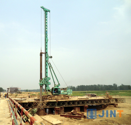 針對該樁基工程特點,施承建單位中鐵大橋局二公司制定了周密的施工計劃,并選擇了上海金泰生產(chǎn)的SH36W多功能鉆機進(jìn)行施工。SH36W是采用大三角結(jié)構(gòu)桅桿結(jié)構(gòu)的大型旋挖鉆機,配置了特制5層摩阻鉆桿、高抗壓抗形變底盤,設(shè)備穩(wěn)定性強、施工能力高。在將軍渡黃河特大橋復(fù)雜的施工環(huán)境下,該設(shè)備創(chuàng)造了單樁21小時成孔的施工速度,創(chuàng)造了國內(nèi)超大、超深樁的施工的新記錄,為將軍渡黃河特大橋工程按期完成提供了保證,得到施工單位、業(yè)主單位的肯定和認(rèn)可。