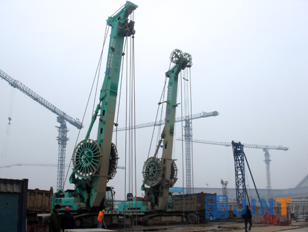 據(jù)工程指揮部有關(guān)人士介紹,濱海國際機(jī)場交通樞紐工程是天津市“十二五”期間重點(diǎn)建設(shè)項目,項目建成后將成為天津集航空、城際鐵路、軌道交通、公路等多種交通方式為一體的綜合性交通中心。由于項目工量大、工期緊、工程質(zhì)量要求高,所以年初開工時,施工單位就調(diào)用了國內(nèi)外多個廠家的基礎(chǔ)施工設(shè)備,金泰SG系列抓斗憑借技術(shù)領(lǐng)先、性能卓越、品牌口碑俱佳等優(yōu)勢,以進(jìn)場數(shù)量和型號最多、施工綜合效率最高的評價結(jié)果令競爭對手黯然失色,成為這場“競賽”的大贏家。據(jù)統(tǒng)計,目前已有8臺SG抓斗在現(xiàn)場施工,型號涵蓋金泰大功率抓斗的全部主流產(chǎn)品,隨著工程進(jìn)度的加快,后續(xù)還將有設(shè)備陸續(xù)進(jìn)場。