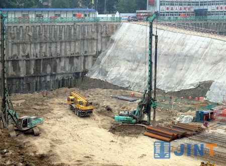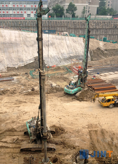 這是北京燕翔飯店改擴建工地,3臺上海金泰SD12旋挖鉆機運作不息,為這座超五星級酒店按時完工進行樁基礎施工。SD12是上海金泰工程機械有限公司研制的小型旋挖鉆機產品,自2007年上市以來累計制造銷售近100臺,由于其整機操作靈活、施工效率高、維護方便,深受國內外用戶青睞和好評,在各類市政工程、工民建等的中小型樁基礎施工中發(fā)揮著主力軍作用,展示著上海金泰產品品質和企業(yè)的實力。