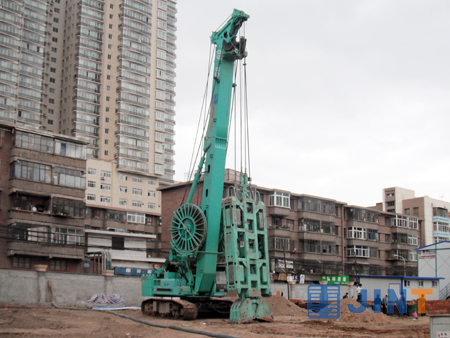 “鴻運•金茂”工程設(shè)計槽深30米,寬0.8米,地下兩米即是沙礫層,沙層下還有中風(fēng)化泥巖,最大礫徑達1米,施工難度非常大,經(jīng)多方研討,亞洲最大的液壓連續(xù)墻抓斗SG60被設(shè)計和施工單位定為解決施工“疑難雜癥“無法替代的理想機型。