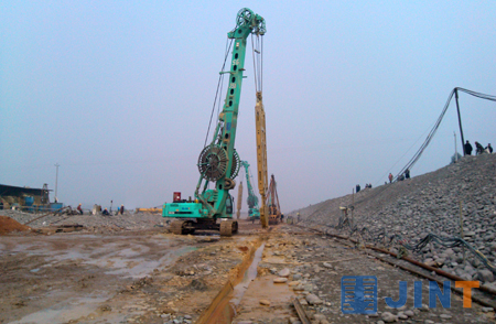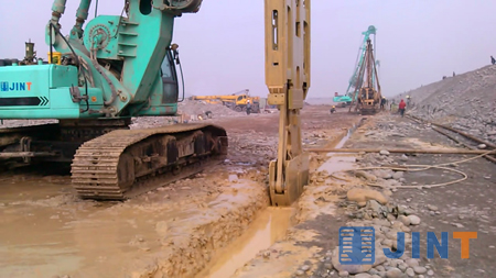 據(jù)介紹,安谷水電站是位于大渡河最末一級水電開發(fā)項目,是以發(fā)電、防洪、航運、灌溉、供水等綜合利用的大型水電工程。電站裝機772MW,正常蓄水位為398m,設計引用流量2640.9m/s,年均發(fā)電量31.44億千瓦時。該電站為二等大(2)型工程,擋水建筑物洪水標準按100年一遇設計,2000年一遇校核。在安谷電站連續(xù)墻防滲重任中,上海金泰公司產(chǎn)品承擔了其中80%的工程量。該工程的成槽厚度分別為400mm、600mm和800mm,地質(zhì)條件較為復雜,卵石密實分布,直徑為10—600mm不等,含量為80%—100%,成槽過程中容易塌方,成槽難度很高。金泰產(chǎn)品以其過硬的質(zhì)量和優(yōu)異的技術特點,獲得業(yè)主單位和承建單位青睞和高度評價,成為中流砥柱。在防滲墻成槽過程中,垂直度完全符合設計標準,成槽效率高,設備油耗小,故障率低,為承建方節(jié)約了成本,并縮短了工期。