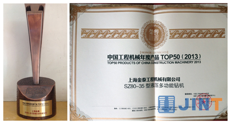 上海金泰SZ80-35多功能鉆機榮獲“2013年度中國工程機械TOP50”殊榮