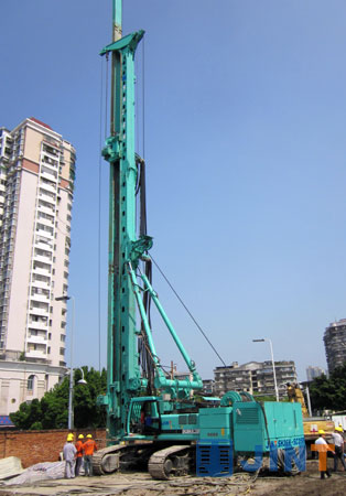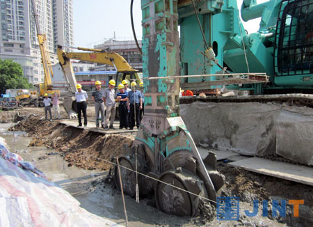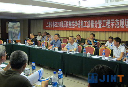 8月2日,上海金泰SMC工法研討暨液壓銑削攪拌鉆機(jī)工程示范現(xiàn)場(chǎng)會(huì)在福州召開(kāi)。有來(lái)自福州,廈門(mén),江浙等地的基坑設(shè)計(jì)專家、基礎(chǔ)施工企業(yè)負(fù)責(zé)人一行三十余人頂著酷暑,觀摩了上海金泰SC35B雙輪攪拌鉆機(jī)在福州臺(tái)江廣場(chǎng)基坑維護(hù)水泥攪拌墻的施工示范。隨后,與會(huì)嘉賓就SMC工法發(fā)展及應(yīng)用前景與上海金泰公司總經(jīng)理林堅(jiān)及有關(guān)研發(fā)人員進(jìn)行了交流和研討。
