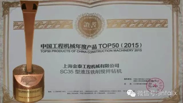 近日 “2015工程機械產(chǎn)品發(fā)展(北京)論壇暨中國工程機械年度產(chǎn)品TOP50頒獎典禮”在北京隆重舉行。上海金泰SC35液壓攪拌鉆機在“技術(shù)創(chuàng)新、市場表現(xiàn)、應(yīng)用貢獻”等多維度得到專家一致認同,榮獲本年度TOP50樁工機械產(chǎn)品獎。這是自2006年“TOP50”活動開展以來,上海金泰連續(xù)九屆蟬聯(lián)此殊榮,也由此成為樁工領(lǐng)域的“大滿貫”企業(yè)。