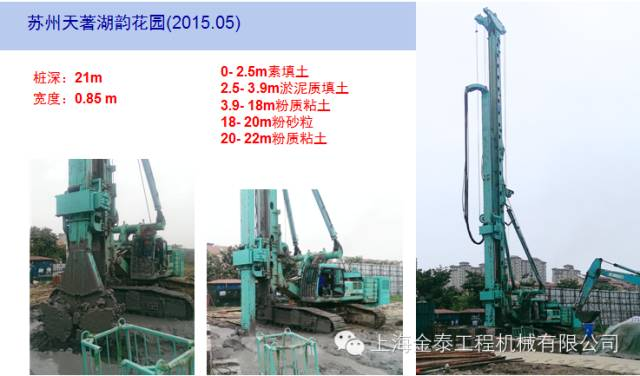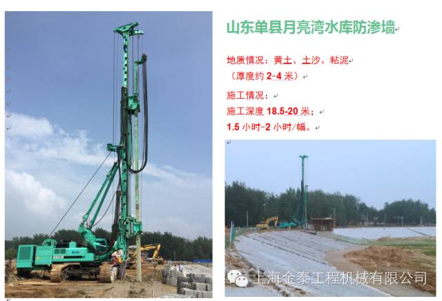 截止2015年底上海金泰SMC工法設(shè)備已完成近30個(gè)項(xiàng)工程的攪拌墻施工,先后經(jīng)歷了粘土、細(xì)密粉砂、卵石以及中微風(fēng)化巖等復(fù)雜地質(zhì)條件的考驗(yàn);產(chǎn)品型號(hào)也已擴(kuò)展到SC35、SC45、SC50、SC60多種型號(hào)等,其中主機(jī)類型包括履帶式和步履式兩大類,攪拌深度最大可達(dá)60米以上。