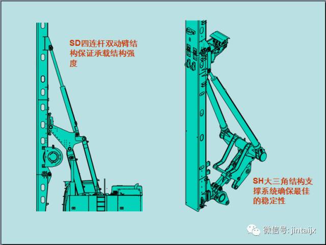 7)在原有SD32基礎(chǔ)上,對(duì)四連桿結(jié)構(gòu)及油缸液壓系統(tǒng)的設(shè)計(jì)進(jìn)行了全面升級(jí),油缸起塔能力大幅度提升;