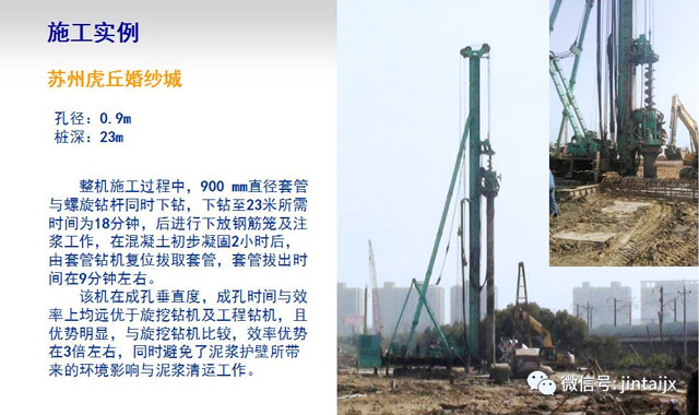 早在去年6月“上海沿江通道越江隧道項目”中,承建單位采用上海金泰SZ80-35全套管鉆機進行抗拔樁施工,成功實現(xiàn)了軟土地質(zhì)條件下無泥漿施工,并順利通過了上海建工集團、上海隧道股份有限公司、上海市基礎工程集團等部門評審和驗收,為在江浙滬等地區(qū)的灌注樁實現(xiàn)無泥漿化施工提供了一種新的可能。此次成功實現(xiàn)咬合樁施工,又將進一步拓展SZ80-35的應用領域。