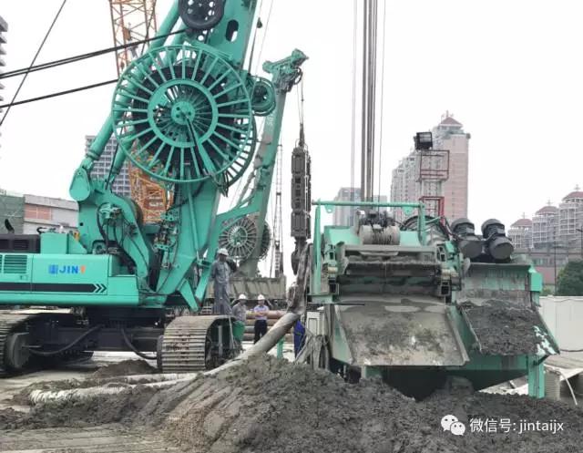2014年9月——南昌地鐵2號線過江隧道中間風(fēng)井地連墻工程。槽寬 800mm、槽深35.5m,有近20米厚的中風(fēng)化粉質(zhì)泥巖,抗壓強(qiáng)度在30MPa左右。金泰三大主流系列產(chǎn)品組合上陣、無縫接力——SH30H旋挖鉆機(jī)引孔、SG60液壓抓斗抓槽至15米深,由SX40銑削到底。SX40在歷史名城南昌再次創(chuàng)造了經(jīng)典案例。