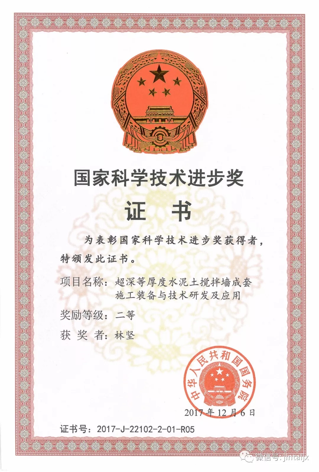 由華東建筑設(shè)計院、上?;A(chǔ)工程集團、上海金泰工程機械有限公司等七家單位共同完成的《超深等厚度水泥土攪拌墻成套施工裝備與技術(shù)研發(fā)及應(yīng)用》項目榮獲2017年國家科技進步二等獎。