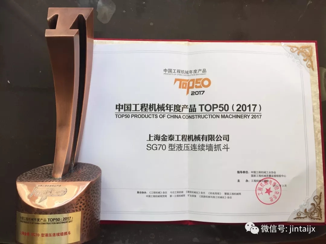 由中國工程機械工業(yè)協(xié)會、國家工程機械質(zhì)量監(jiān)督檢驗中心指導(dǎo),《工程機械與維修》主辦的“中國工程機械年度產(chǎn)品TOP50”評選展開角逐。上海金泰SG70地連墻液壓抓斗榮獲“2017中國工程機械年度產(chǎn)品TOP50”產(chǎn)品獎。