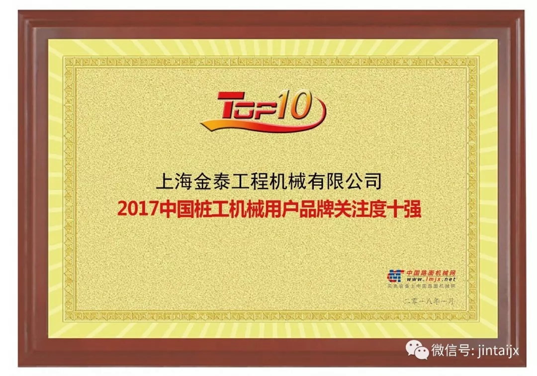 《中國路面機械網(wǎng)》和《工程機械電商網(wǎng)》在北京發(fā)布了《2017樁工機械用戶品牌關(guān)注度排行榜》,“上海金泰”位列品牌榜第四位。該榜單為用戶對樁工機械所有品牌和產(chǎn)品的瀏覽及在線詢價次數(shù)而生成的品牌關(guān)注度指數(shù),較為忠實的反應(yīng)出終端用戶對行業(yè)品牌及產(chǎn)品的認知及偏好。