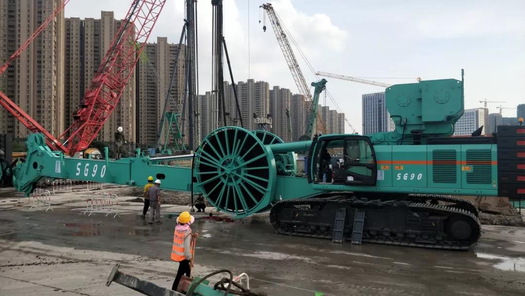 目前阿里巴巴江蘇總部工程共有4臺(tái)金泰成槽機(jī)在施工,SG60A、SG70、SG70A和2019年7月15日剛上市的金泰SG90液壓連續(xù)墻抓斗。自7月21日出廠至25日裝機(jī)完成施工,廣大客戶一直密切關(guān)注著這臺(tái)新設(shè)備,雖說(shuō)金泰SG90液壓連續(xù)墻抓斗是剛出生不久的新生兒,但已然成為了大眾關(guān)注的焦點(diǎn)。