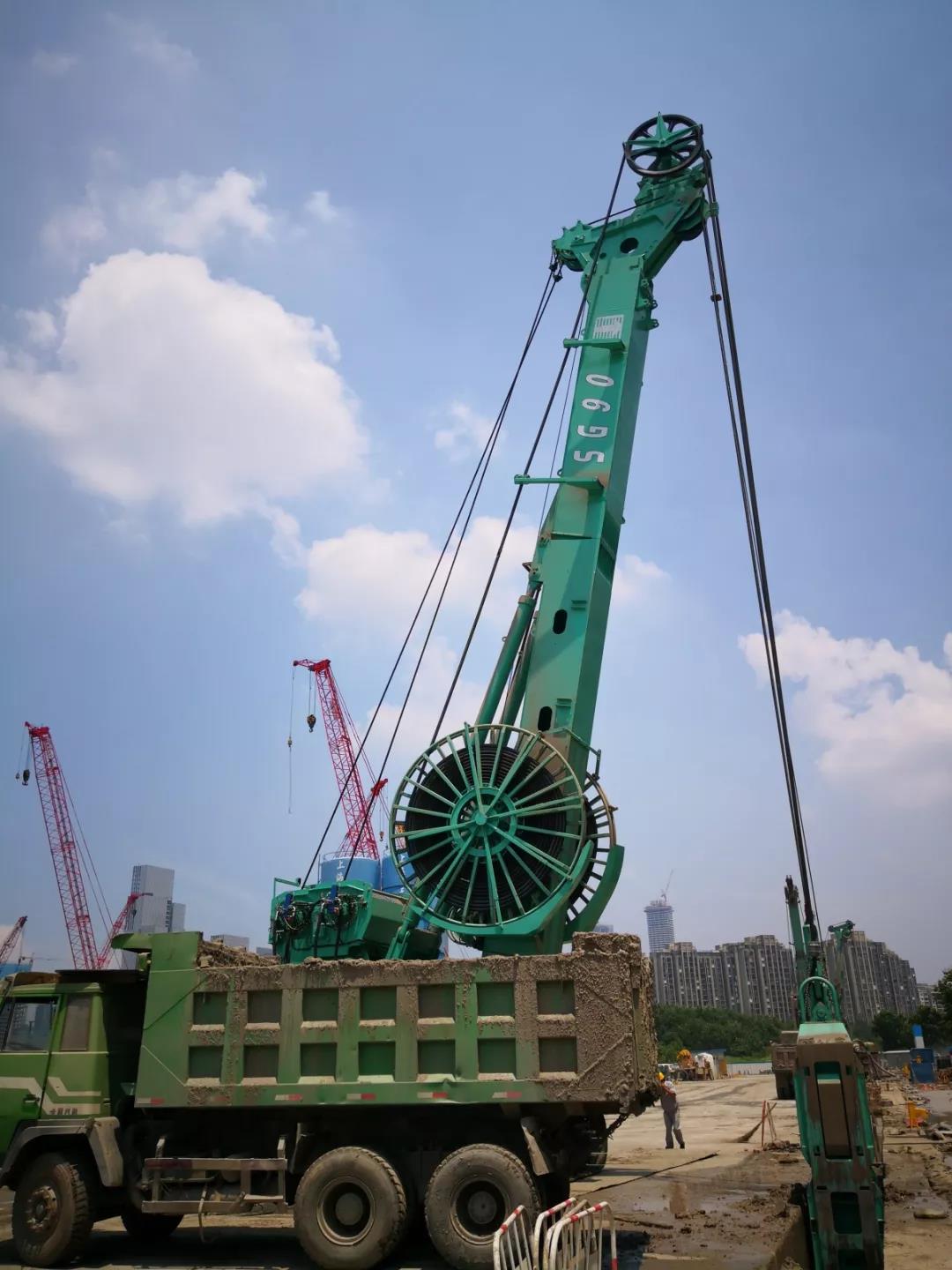 阿里巴巴江蘇總部工程地質(zhì)情況為0米至8米淤泥層,8至45米粉沙層,45米至62米鐵板沙層,62米至67米泥巖層。第一幅寬1米、長(zhǎng)6米、深67米的槽段去除每裝一車(chē)停泊15分鐘的時(shí)間,用時(shí)28小時(shí)完成施工;第二幅寬1米、長(zhǎng)5米、深67米的槽段用時(shí)16小時(shí)完成施工,截止目前已完成4幅槽。較國(guó)內(nèi)抓斗產(chǎn)品開(kāi)閉斗效率、提升下放速度、挖掘能力均提升30%左右。就SG90現(xiàn)場(chǎng)的表現(xiàn)項(xiàng)目部給出了很高的評(píng)價(jià):“金泰SG90液壓連續(xù)墻抓斗迎合客戶需求,大幅提升優(yōu)化產(chǎn)品性能、是掘地筑城的精品良將”。
