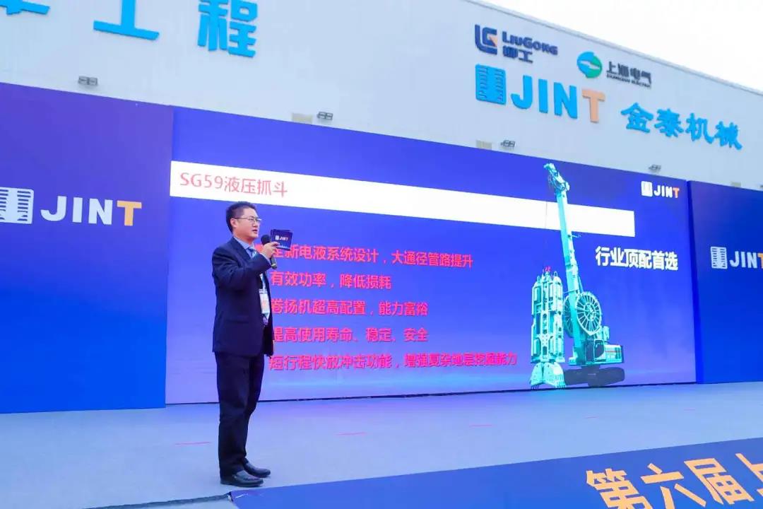 隨著國家基礎(chǔ)建設(shè)的縱深發(fā)展,為解決深大地下空間開發(fā)面臨的深層地下水控制問題,2014金泰成功開發(fā)了SC系列雙輪攪拌鉆機,成為解決復(fù)雜地質(zhì)和城市敏感環(huán)境中超深等厚水泥土攪拌墻的關(guān)鍵技術(shù),由此在2017年榮獲“國家科技進步二等獎,”成為又一個推動國家基礎(chǔ)施工裝備升級的典范。本屆展示會金泰發(fā)布了三款抓斗新產(chǎn)品:極具性價比優(yōu)勢D系列代表機型SG50D、體現(xiàn)專業(yè)與智慧的中型王牌產(chǎn)品SG59、被譽為“能效之王”超重型抓斗SG90。