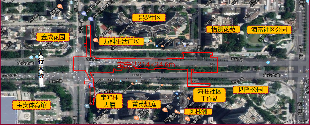 SX50在建施工的寶安站位于寶安大道上,處于裕安一路與創(chuàng)業(yè)一路之間,為穗莞深城際深圳寶安至前海段的第二座車站。該車站規(guī)模314m(長(zhǎng))×25.1m(寬),基坑開挖深度為30.5~32.87m,地下三層雙柱三跨島式車站,明挖順作法施工,附屬設(shè)4個(gè)出入口,2組風(fēng)亭。周邊建筑密布,沿線主干道兩側(cè)分布有地下通訊管線、電纜、燃?xì)鈿夤艿?、給排水管等各種類型的地下管道及線路,埋藏情況較為復(fù)雜。