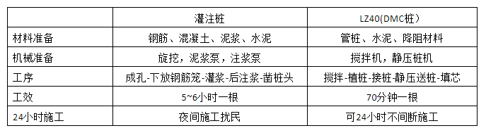 - LZ40深層攪拌鉆機(jī)+靜壓樁機(jī)一天可完成10根樁的施工;