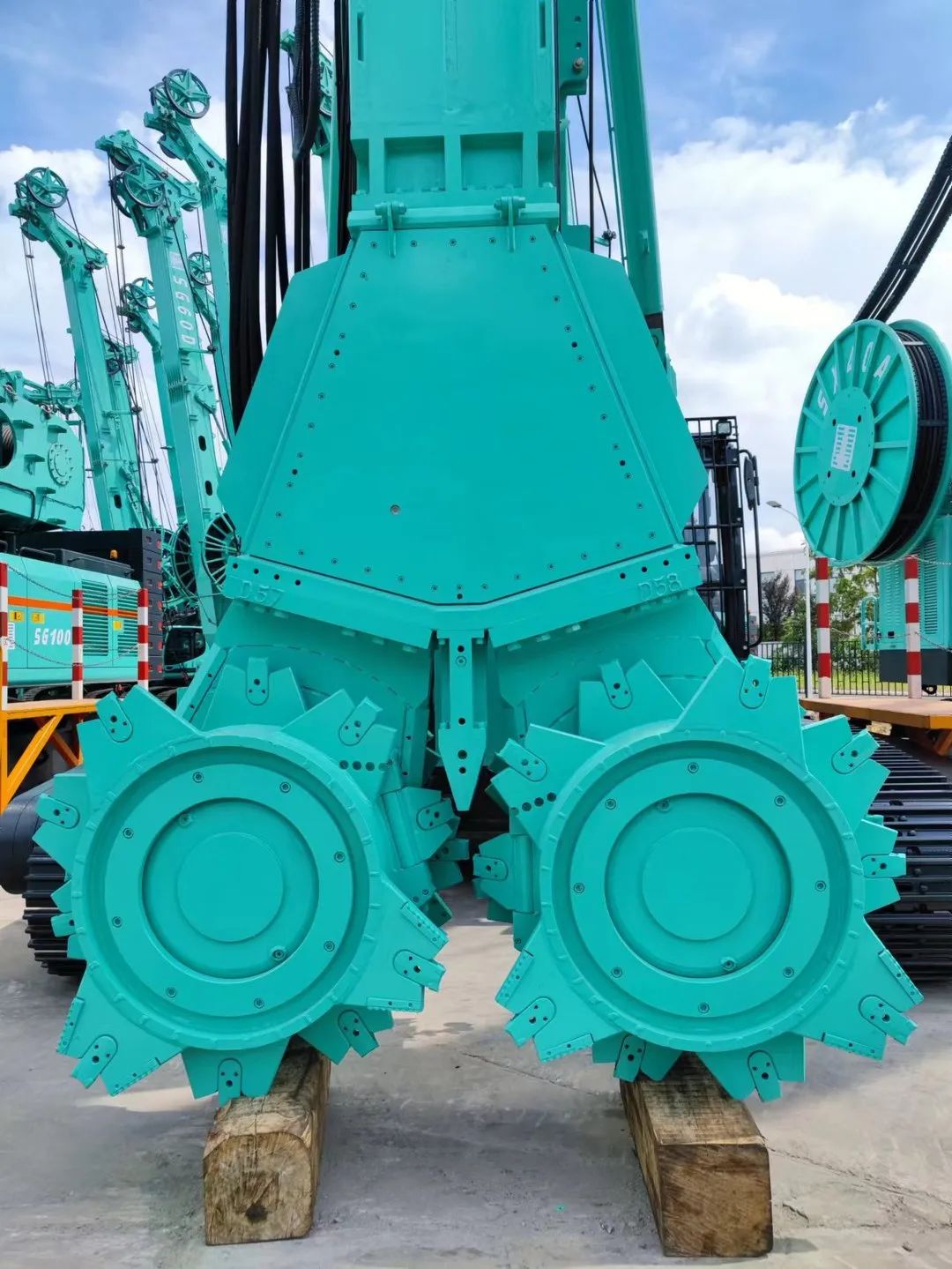 新一代SC55雙輪攪拌鉆機結(jié)合了液壓銑槽機的設備技術和深層攪拌技術,與金泰自主研發(fā)的主機配套,可在復雜地質(zhì)條件下完成攪拌城墻施工。