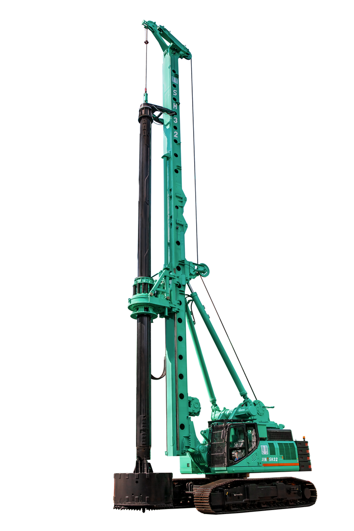 SH32是在我公司兩款明星產品SH30基礎上的改進升級版,通過增加優(yōu)化設計,改善液壓系統(tǒng),提高有效輸出功率;通過增加下底盤重量,合理增減配重,達到加壓力和起拔力的合理平衡,增加鉆機入巖能力。